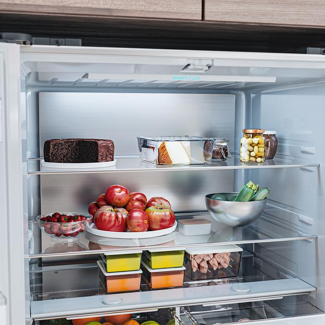 - Cajón Convertible FreshNessHub: ajusta la humedad y la temperatura a 0ºC, +4ºC o +7ºC según tus necesidades para conservar carnes, pescados, frutas y verduras o bebidas
