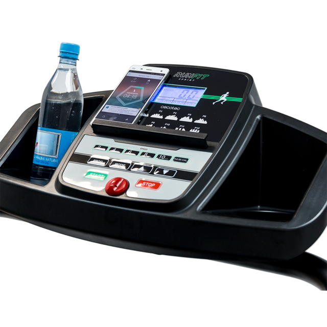 - Panel de control (marca: velocidad, tiempo, distancia, calorías y pulsaciones).